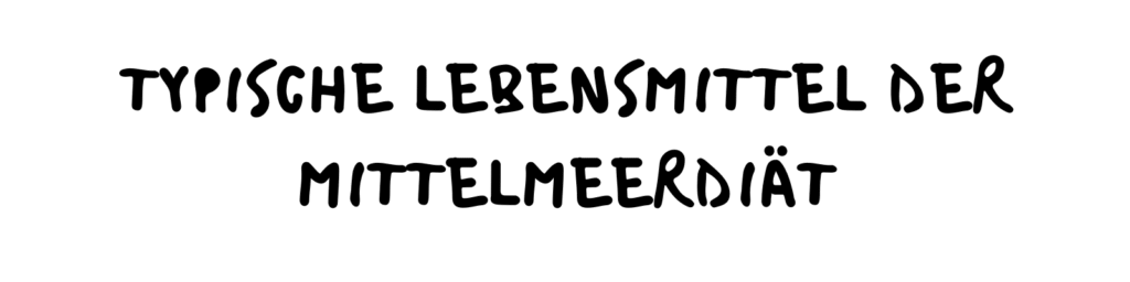 Die Mittelmeerdiät besteht aus einer großen Vielfalt an Lebensmitteln. Besonders wichtig sind frische und möglichst unverarbeitete Produkte. Zu den wichtigsten Lebensmitteln gehören: