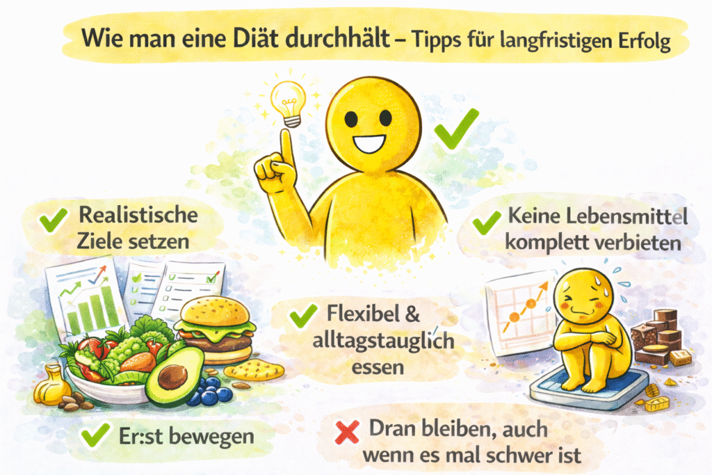 Abnehmen ist für viele Menschen kein kurzer Prozess. Oft dauert es mehrere Monate, bis ein gewünschtes Gewicht erreicht wird. Deshalb ist es besonders wichtig, eine Ernährung zu finden, die nicht nur kurzfristig funktioniert, sondern auch langfristig durchhaltbar ist. Viele Diäten scheitern nicht daran, dass sie grundsätzlich falsch sind, sondern daran, dass sie zu streng oder zu kompliziert sind. Wenn eine Diät sich wie eine dauerhafte Einschränkung anfühlt, sinkt die Motivation schnell. In diesem Artikel schauen wir uns an, wie man eine Diät durchhält, welche Strategien helfen können und welche Gewohnheiten den Abnehmerfolg langfristig unterstützen.