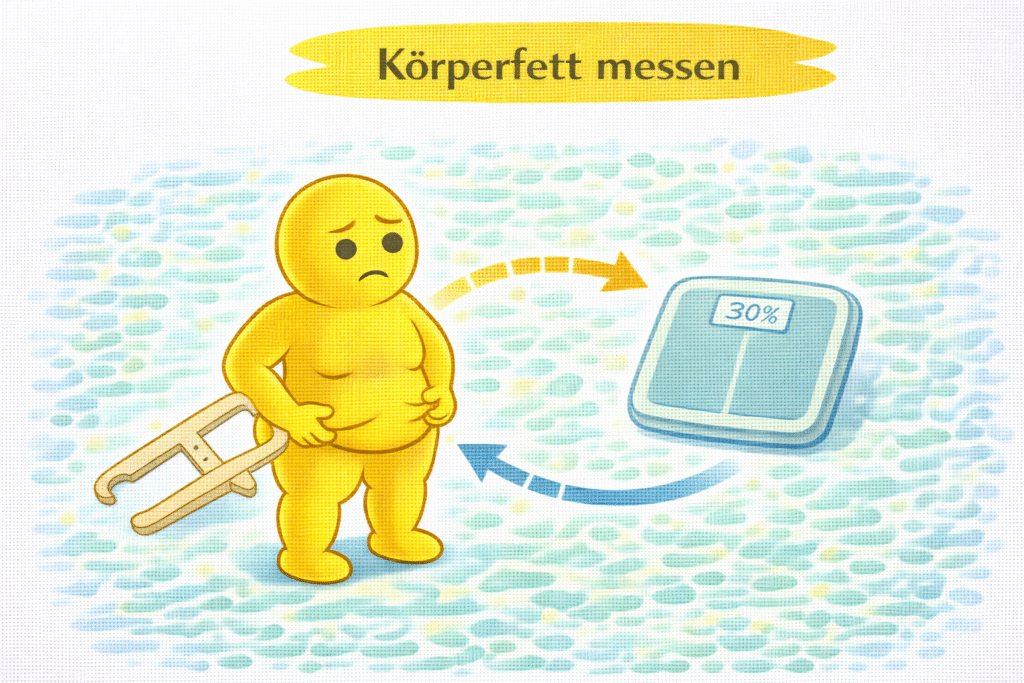 Eine weitere bekannte Methode, um Körperfett zu messen, ist die sogenannte Hautfaltenmessung. Dabei wird ein spezielles Messgerät verwendet, das als Caliper bezeichnet wird. Mit diesem Gerät werden Hautfalten an bestimmten Stellen des Körpers gemessen. Zu den typischen Messpunkten gehören zum Beispiel Bauch, Oberschenkel oder Oberarm. Die Idee hinter dieser Methode ist relativ einfach. Ein großer Teil des Körperfetts liegt direkt unter der Haut. Wenn man die Dicke der Hautfalten misst, kann man daraus Rückschlüsse auf den gesamten Körperfettanteil ziehen. Mithilfe bestimmter Formeln wird aus den gemessenen Werten anschließend der ungefähre Fettanteil berechnet.