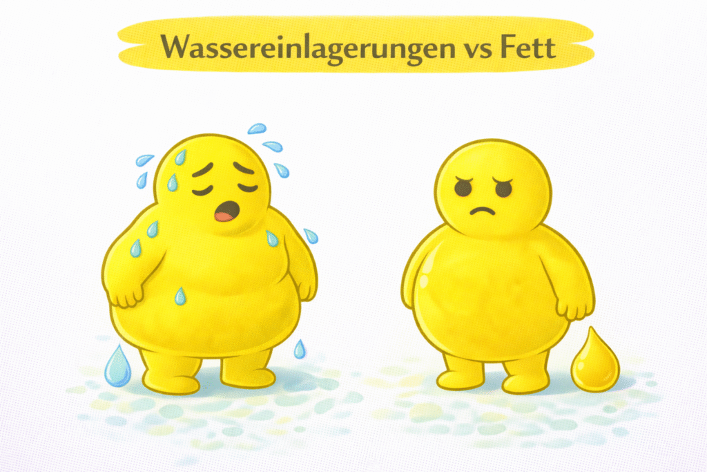 Der Körper reguliert seinen Wasserhaushalt ständig. Hormone, Mineralstoffe und die Nieren arbeiten zusammen, um das Gleichgewicht zwischen Flüssigkeitsaufnahme und Flüssigkeitsausscheidung zu steuern. Wenn dieses Gleichgewicht kurzfristig verändert wird, kann der Körper vorübergehend mehr Wasser speichern. Solche Wassereinlagerungen sind in den meisten Fällen völlig normal und verschwinden nach einiger Zeit wieder. Sie haben meist nichts mit einer langfristigen Veränderung des Körperfetts zu tun. Gerade beim Abnehmen können Wassereinlagerungen dazu führen, dass das Gewicht auf der Waage schwankt.