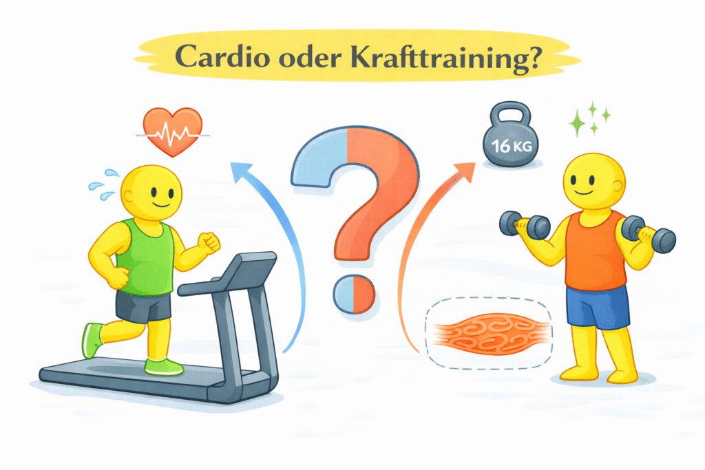 Wer abnehmen möchte, stößt früher oder später auf die Frage, welche Trainingsform eigentlich besser geeignet ist: Cardio oder Krafttraining. Beide Methoden sind sehr beliebt und werden oft miteinander verglichen. Viele Menschen möchten möglichst effizient Körperfett verlieren und suchen deshalb nach der Trainingsform, die am meisten Fett verbrennt. Der Hintergrund dieser Frage ist leicht zu verstehen. Abnehmen bedeutet in den meisten Fällen, Körperfett zu reduzieren. Deshalb versuchen viele Menschen herauszufinden, welche Art von Training den größten Effekt auf den Fettabbau hat. Während einige auf lange Cardioeinheiten setzen, schwören andere auf intensives Krafttraining.