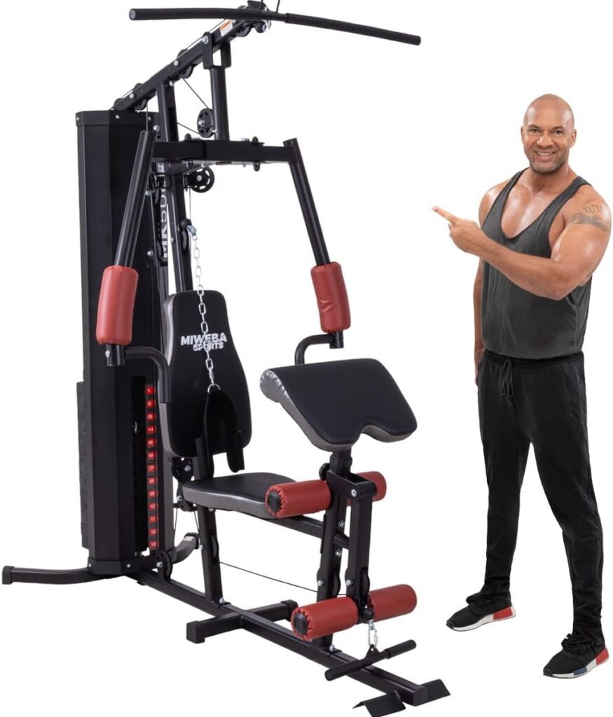 Der Miweba Sports Kraftstation MK500 ist eine vielseitige Heim-Kraftstation, die auf kompaktem Raum ein umfangreiches Ganzkörper-Training ermöglicht. Ausgestattet mit einem Gewichtsstapel von rund 60 kg und Anpassungsmöglichkeiten in mehreren Stufen lässt sie sich sowohl für Einsteiger als auch für erfahrene Nutzer nutzen. Das solide Stahlrahmen-Design mit etwa 18 Umlenkrollen und sechs Standfüßen gewährleistet stabile Bewegungsabläufe und hohen Trainingskomfort — auch bei intensiveren Einheiten. Die Ausstattung umfasst u. a. Brustpresse/Butterfly, Latzug, Beinstrecker und eine Bizeps-/Trizeps-Station, wodurch Brust, Rücken, Arme, Schultern und Beine gezielt trainiert werden können. Gepolsterte Sitz- und Rückenelemente sind höhenverstellbar, damit die Station ergonomisch auf verschiedene Körpergrößen angepasst werden kann. Nutzer-Maximalgewicht liegt bei bis zu etwa 125 kg; das Eigengewicht des Geräts beträgt rund 115 kg. Mit dieser Kraftstation erhältst du ein platzsparendes, gut ausgestattetes Trainingstool für den Heimgebrauch, das viele Übungen in einem Gerät bündelt.